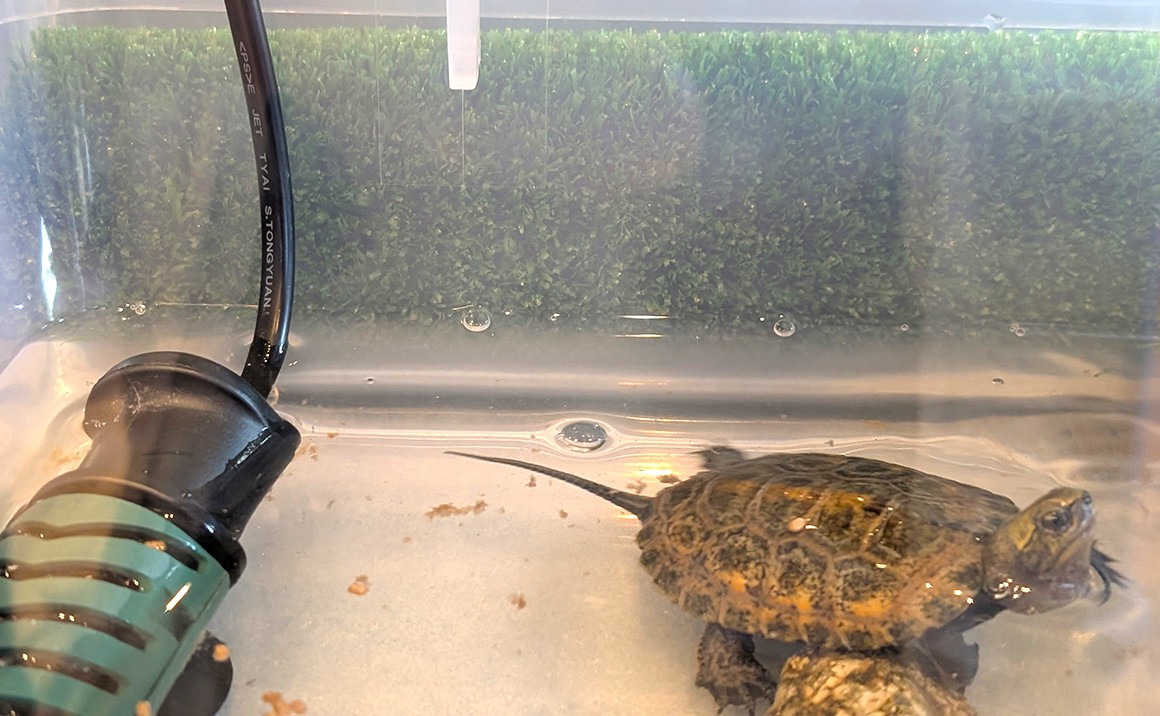 プレザンメゾン神戸ジェームス山には 横綱という名前の亀がいます 横綱は昨年8月頃に施設に来ました 毎日 朝晩のえさの時間をとっても楽しみにしている食いしん坊の横綱です 8月から身長も2倍 体重は3.5倍にもなりました 面会のご家族様にも大人気で、水槽の前には人だかりができています とっても人懐っこくてかわいい横綱を是非、ご面会のときにはご覧ください
