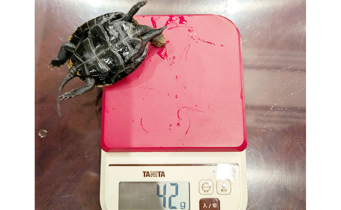 2枚目の写真は、プレザンメゾン神戸ジェームス山で大切に育てている亀の「横綱」の体重測定です