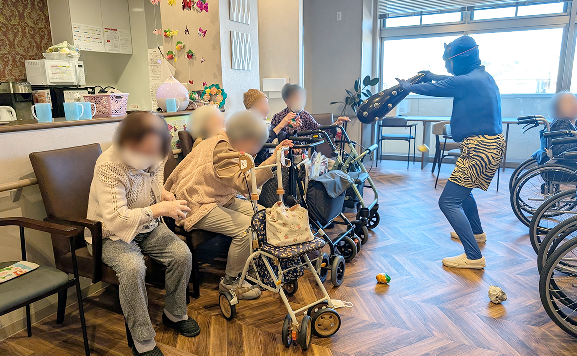 ご入居者様の皆様が笑顔で豆を投げる姿をみて 今年も笑顔の多いよい一年になるんだろうなと思いました