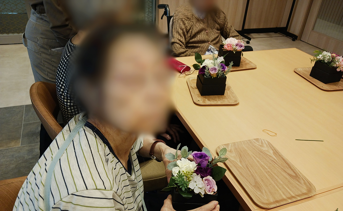 今回はプレザングラン成城で月に1回、実施しております『アーティフィシャルフラワーアレンジメント作り』についてご紹介いたします。