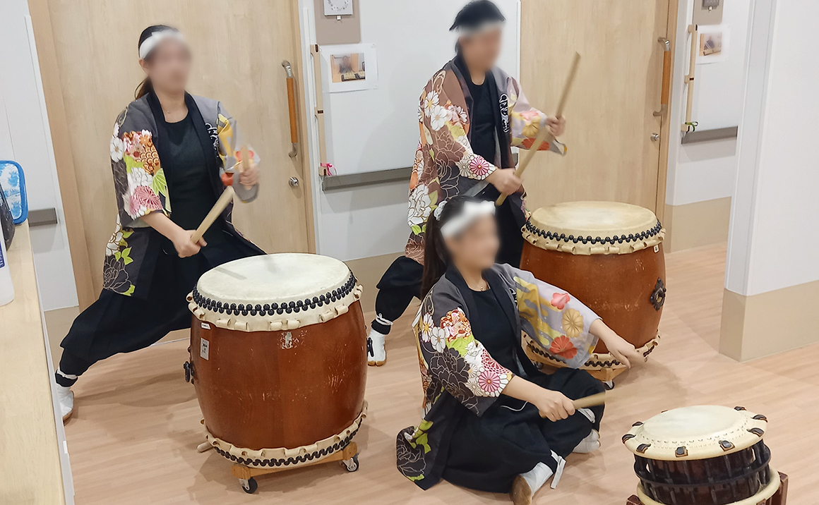 その後、利用者様も和太鼓を叩いていただき、楽しまれていました。