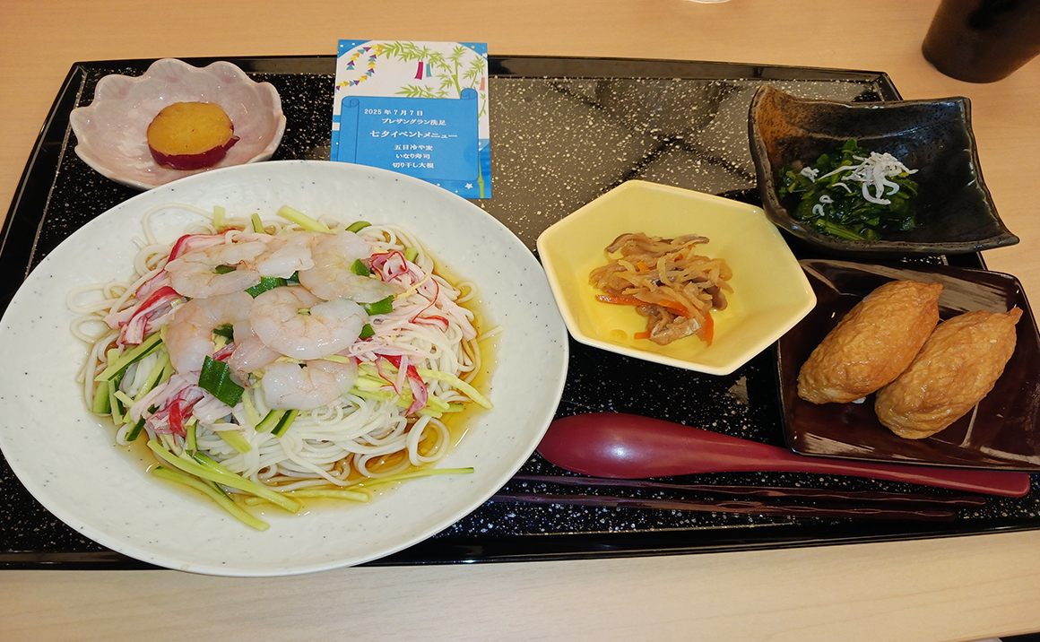 昼食は「五目冷や麦とおいなりさん」 おやつには「星形の練り切り」が提供されました!