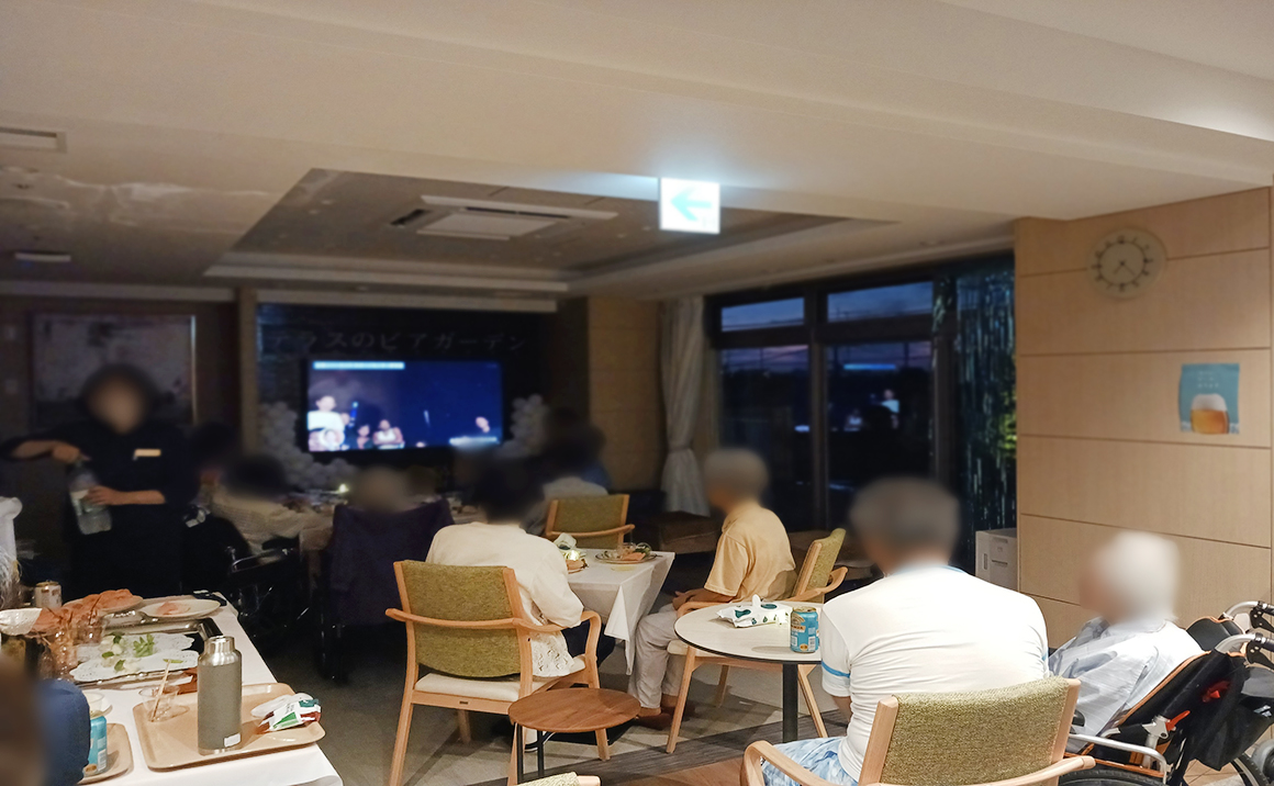 あたりもすっかり暗くなり、 さらにビアガーデンらしく✨ 新たなお客様もいらっしゃったので、 あらためて皆さんと乾杯です🍻