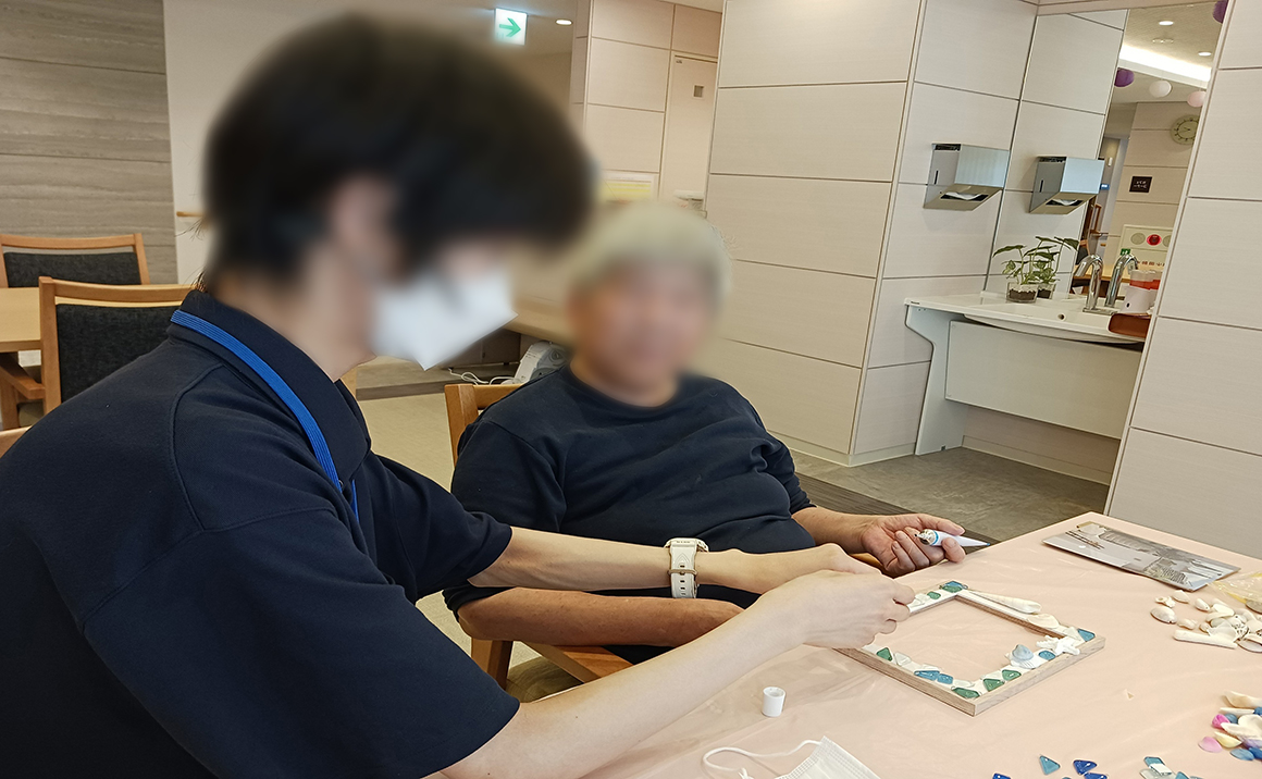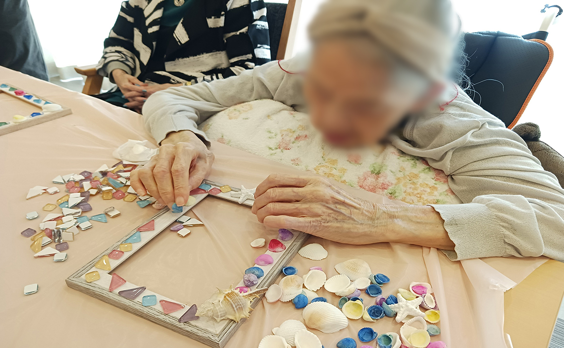 お好きな色のガラスや貝殻をフォトフレームに張り付け完成✨