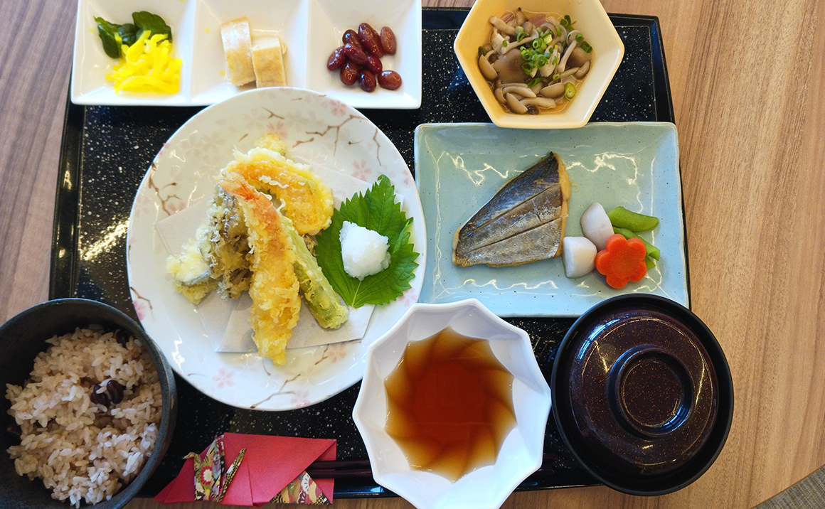 皆さまこんにちは 本日は“敬老の日💐” ご昼食には「敬老の日特別メニュー」をご用意させていただきました! お祝いの席には、やっぱりお赤飯ですよね💛 また、この日のためにとご入居様が素敵なお箸入れを作ってくださいました! お箸入れのおかげで、お膳が一段と引き立ちました✨ ご協力いただきありがとうございました!!