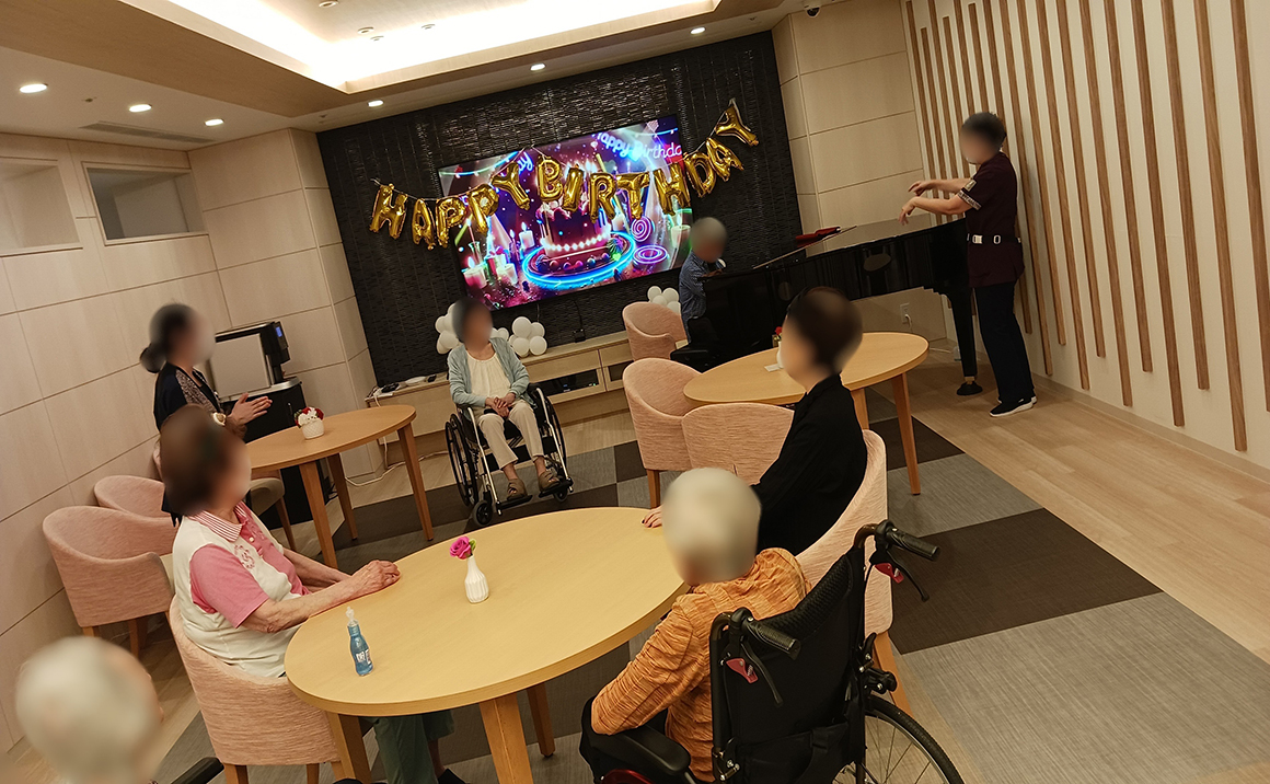 今日は教会の元オルガニストでもあるご入居者様に伴奏をお願いし、 “ハッピーバースデー”の曲でお祝いをさせていただきました♫