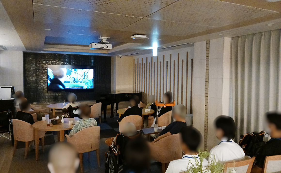 皆さまこんにちは 本日は映画観賞会! その名も「プレザンシネマ📹」です☺ 皆さまに映画館の気分を少しでも味わっていただけたらと、 先月より上映をスタートさせていただきました💦 上映中には、お飲物とスナックもご提供させていただきました!