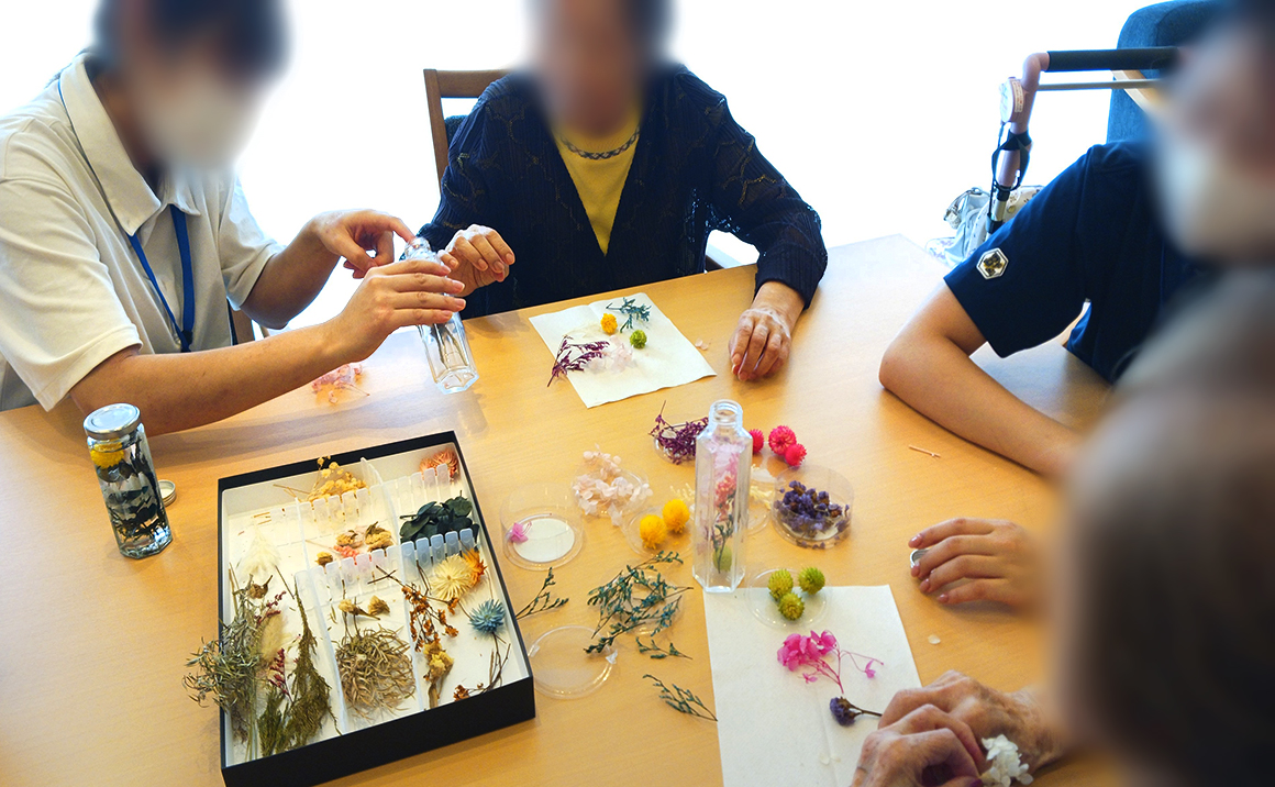 皆さまこんにちは 本日のイベントは「ハーバリウム✨」 ハーバリウムとは、ドライフラワーやプリザードフラワーなどの植物を、 専用のオイルと一緒にガラス瓶煮詰めた観賞用のインテリアです❀