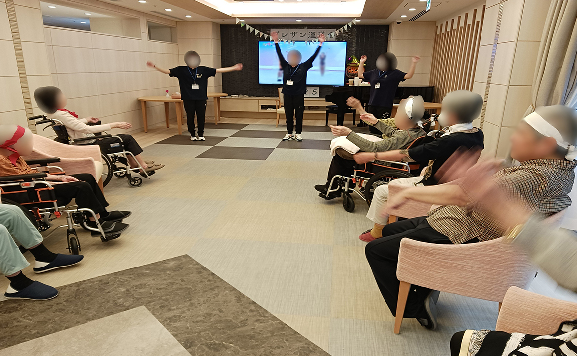 ご入居者様による開会宣言で運動会スタート💦