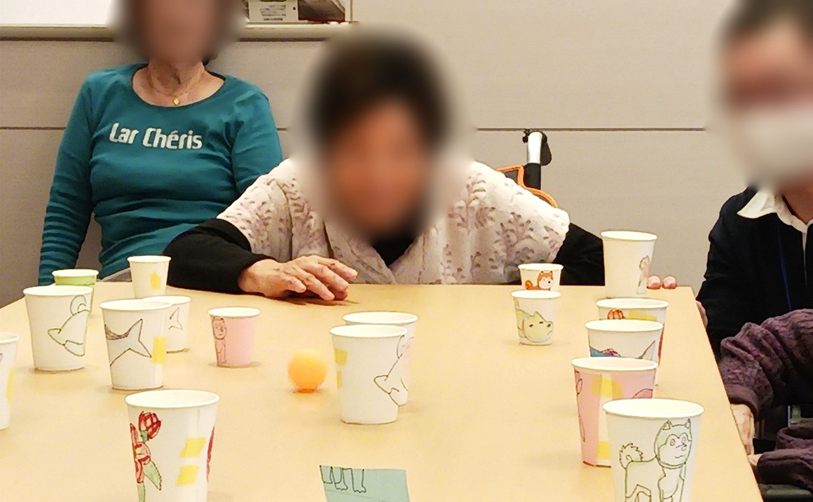 皆様こんにちは 本日は教育実習最終日、 実習生によるレクリェーションの発表会です! 今回は、レクリェーションの準備段階からお客様にも参加して頂きました! ゲームの内容は、 3か所あるカップをめがけて球を投げ入れるだけの簡単なゲームのはずが・・・ カップインまでに障害物があちらこちらにあるため、思いの外難しかったですね💦