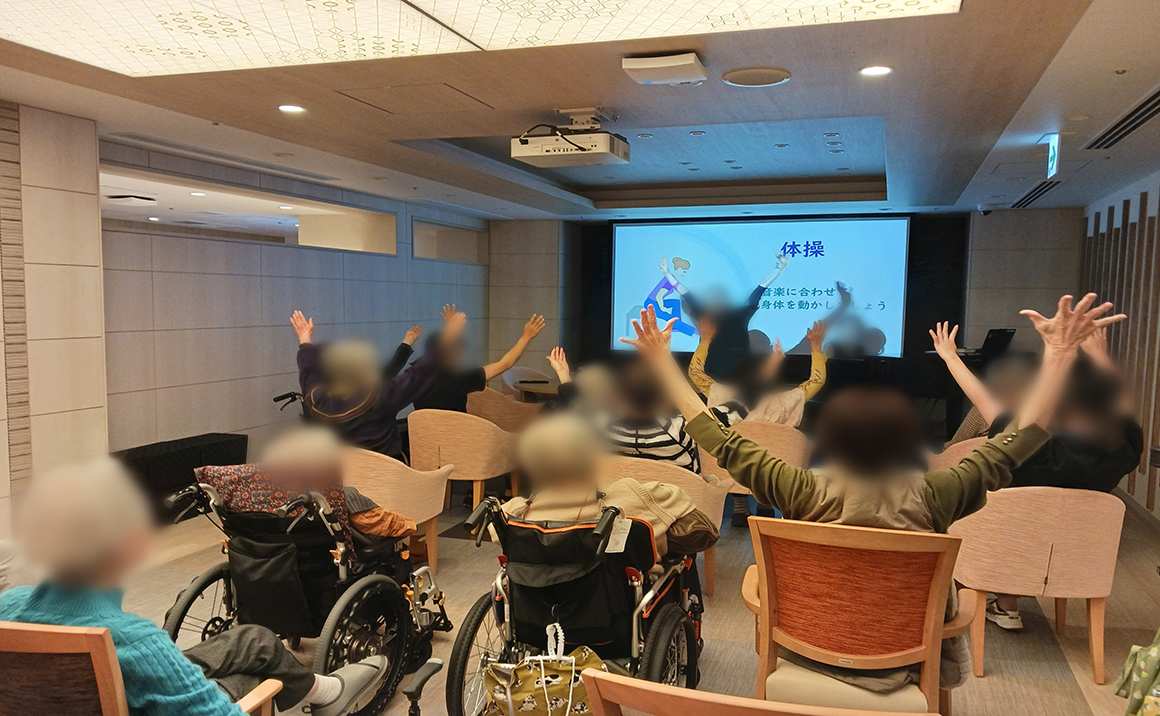 皆さまこんにちは 本日は藤原先生による音楽療法です♫ 今回も歌と体操を交えながら、 皆さまと一緒に身体を動かしました!!