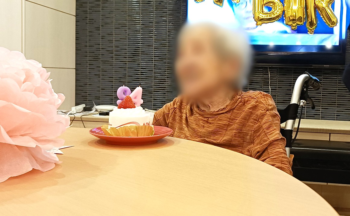 皆さまこんにちは 本日は94歳になられるお客様のお誕生日会です!! いつも笑顔が素敵なお客様♡ 今日は一段と素敵な笑顔でした(❁´◡`❁)