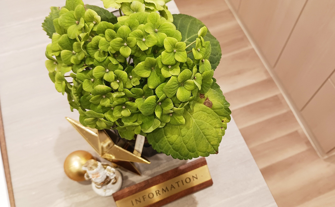 皆様こんにちは 今年の6月20日に、 エントランスのお花として洗足にやって来た切り花の紫陽花さん💛 あれからもう5か月が・・・💦 少し元気がなくなってきましたが、 受付でいまだ頑張ってくれています(❁´◡`❁)