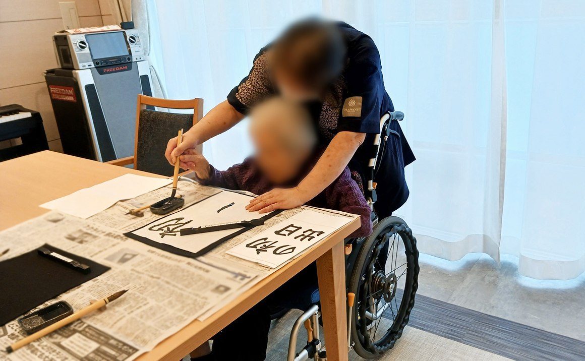 本日は師範を持つ介護スタッフによる書道教室です!