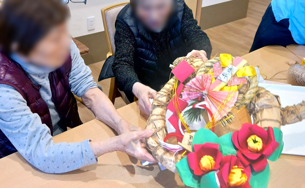 謹賀新年! 【たのしい家姫島】でみんなで迎える初めてのお正月。。。 玄関には、皆さんと一緒に作ったしめ縄を。。。 そして、新年には初詣へ… 【たのしい家姫島】の近くには、有名になった『姫島神社』があります。 ご自分はもちろん、大切なご家族の健康と幸せを…☆彡 これで今年もみんな一緒に笑って楽しく過ごせることと思います!