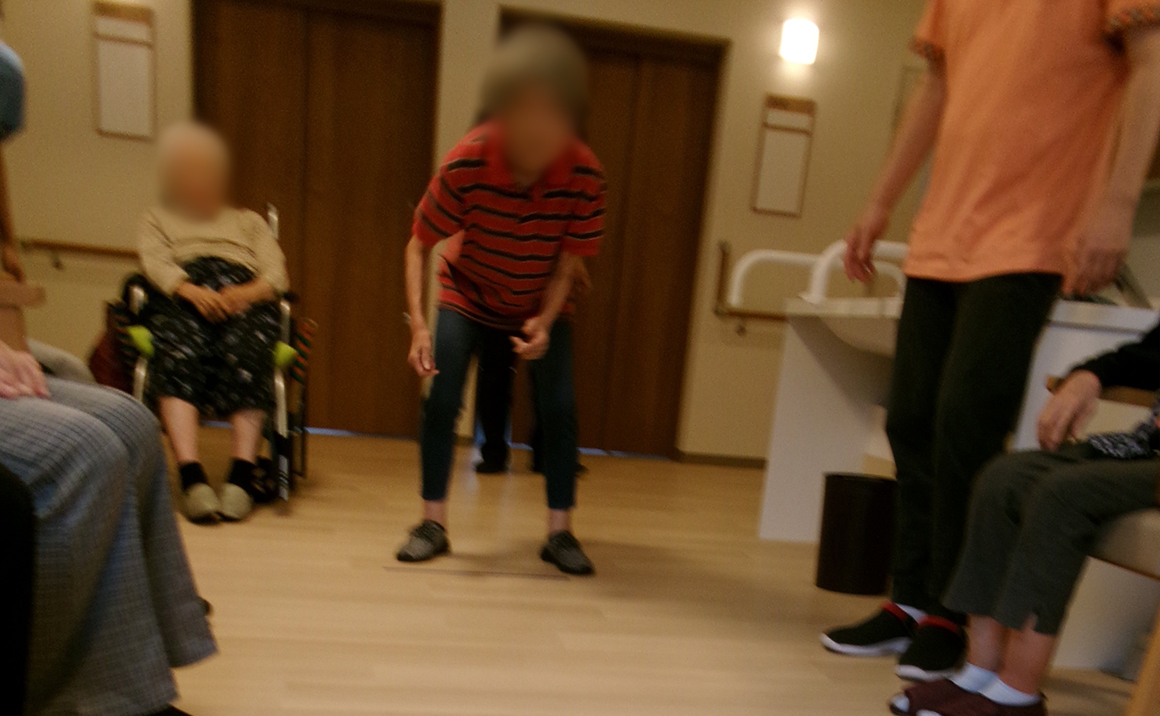 ボールはゴムボールを使用したためか、なかなか真っすぐに転がず多くのピンを倒せないご利用者様がいましたが、「お手本見せて」とご指名があった職員が全部倒しとても大盛り上がり笑