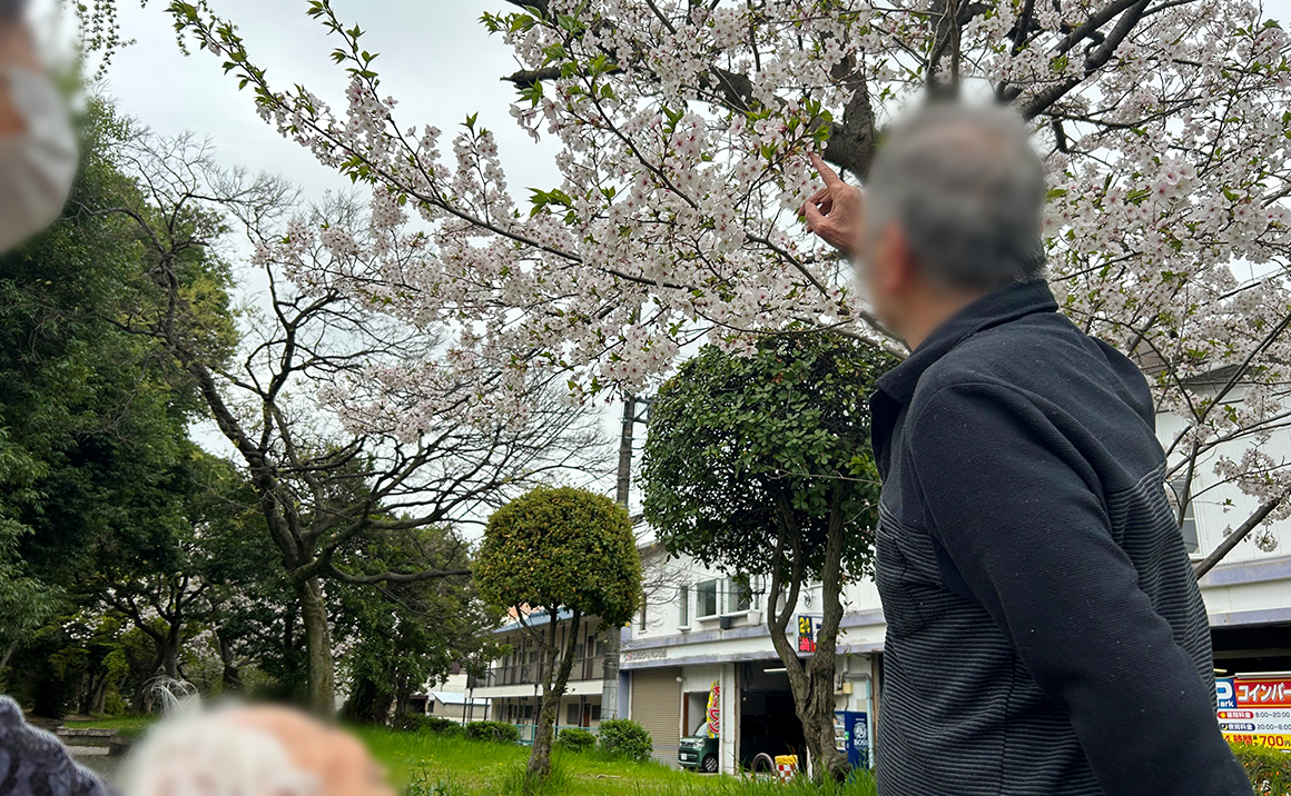 4月初旬より、順番に施設近隣の“吹田市南吹田公園”にお花見に行きました。 今年は天候に恵まれ、夏日のように暑い日もありましたが、 なんとか希望された方は皆さん花見に参加して頂くことができました。 「風が気持ちいいわ。」 「(桜が)綺麗やね。」 公園で遊ぶ子供たちにも元気を頂きました。