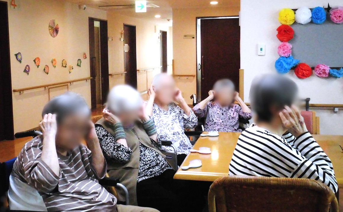この日はセルフのヘッドスパでした。皆さん熱心に自分の頭のマッサージをされてました。 仕上げにブラシで頭皮に適度に刺激を与え、気持ちいいわ♡と聞かれてました。 小顔効果に良いと聞いてしっかりセルフマッサージされてました。