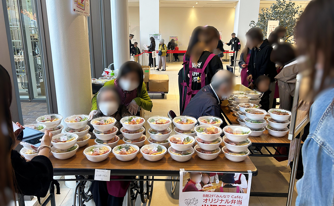 プレザンメゾン東淀川大隅からのお誘いで、プレザンメゾン寝屋川と一緒に、 大阪経済大学主催のみんなでcaféの店員として、入居者様と参加させて頂きました。 お揃いのエプロンをつけ、メイン会場の入口でお弁当販売をしました。 この日は子供たちが集めるイベントがあって、たくさんの子供達とも交流しました。 参加された入居者様は「疲れたけど、楽しかった。また参加したい」と言ってくださいました。