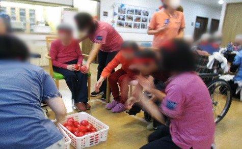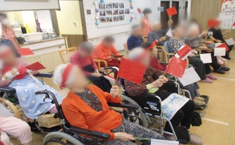 秋を感じさせる寒さになり、秋にはと、計画していた運動会を開催しました。 紅組と白組に分かれて頂き、鉢巻を巻いて掛け声で運動会モードに。 玉入れ競争やジェスチャーゲーム、旗揚げで競争をしました。 協力して、玉を拾ったり投げたりされたり、ジェスチャーを何とか当てようと見ておられました。 終了式には、「お疲れ様」「お互いがんばったね」などと笑っておられました。