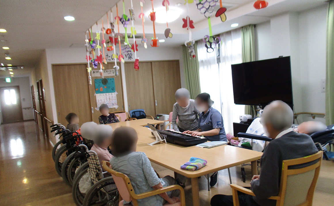 施設の畑で育てていた夏のトマトやキュウリが一段落したのですが、一緒に植えていた茄子はまだ育ってきており、 収穫し、味噌汁に入れたりして美味しく頂いてます。 これから冬野菜に向けて、何を植えるのか検討中です。また育つのを楽しみにしています。 10月にはハロウィンがありますので、それに向けて利用者様が飾りつけを作るのを手伝ったり、 飾るのを手伝ったりして下さいました。雰囲気が変わり、これいいやんと言われてました。