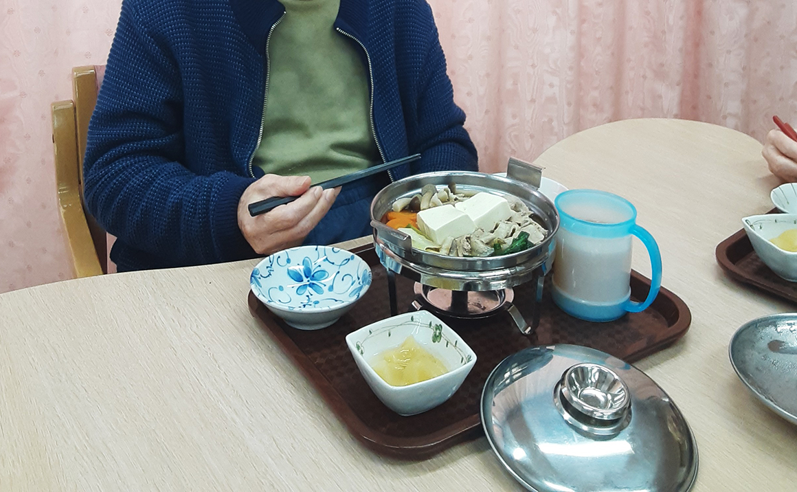 皆様お一人ずつ小鍋で暖かいお鍋を提供させていただき、たいへん喜んでいただけました。