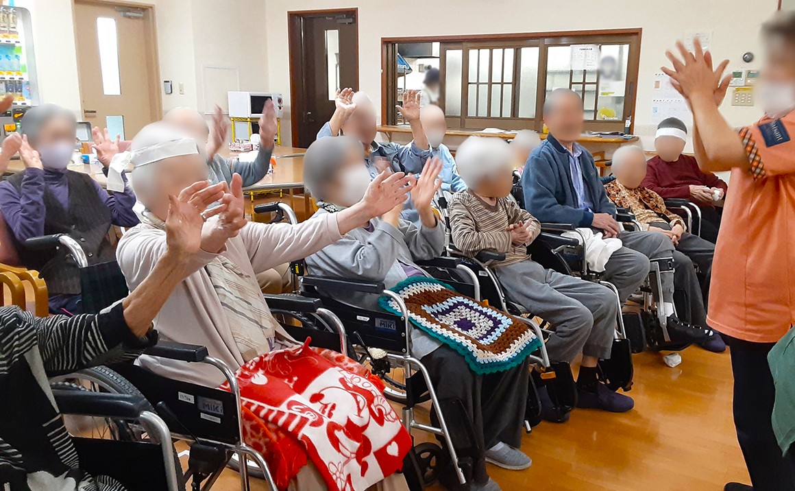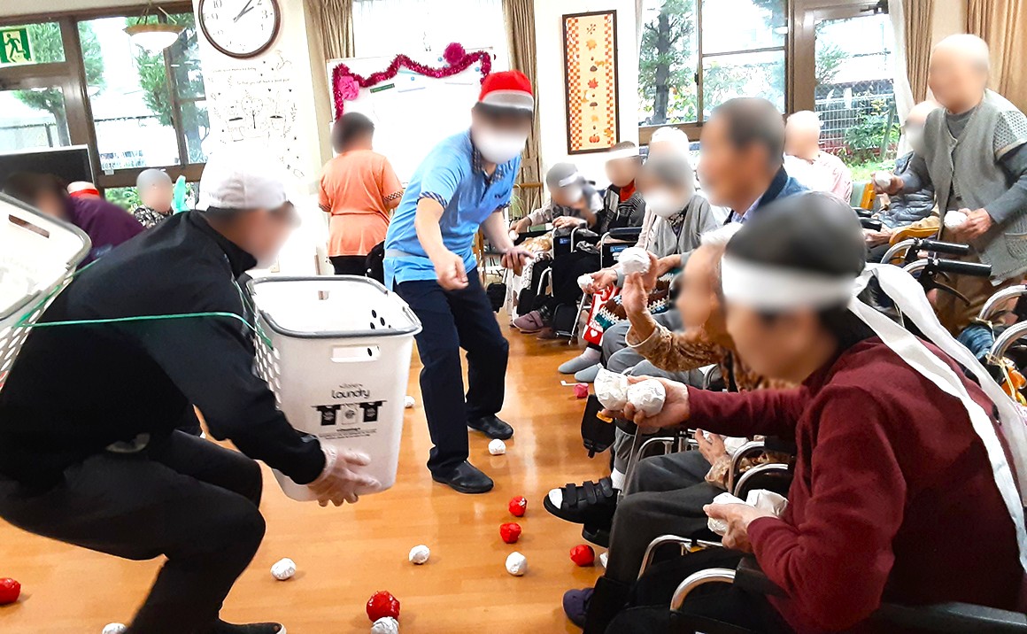 赤・白組に分かれて玉入れの始まりです!! 赤白のハチマキを頭に巻いて、スタッフは赤白帽を被り、気合十分でスタートです!!