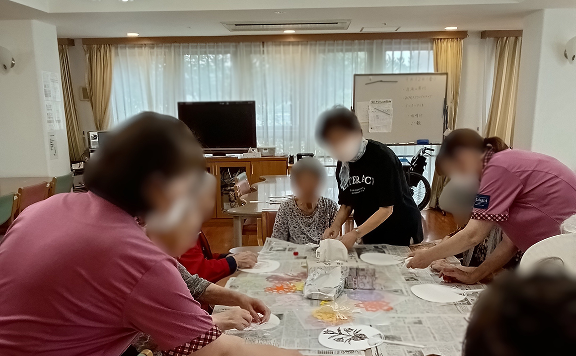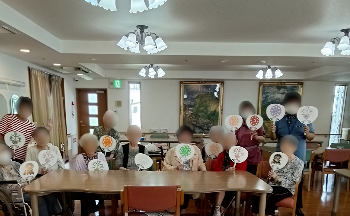 本日は工作レクのボランティアさんに来ていただき、オリジナルうちわを作成しました。
