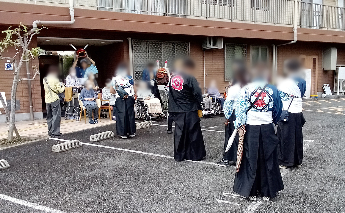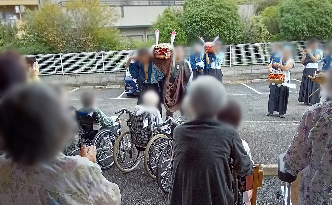 太鼓や笛の音と獅子舞の舞う姿に、入居者様は拍手をされ喜んでおられましたよ。