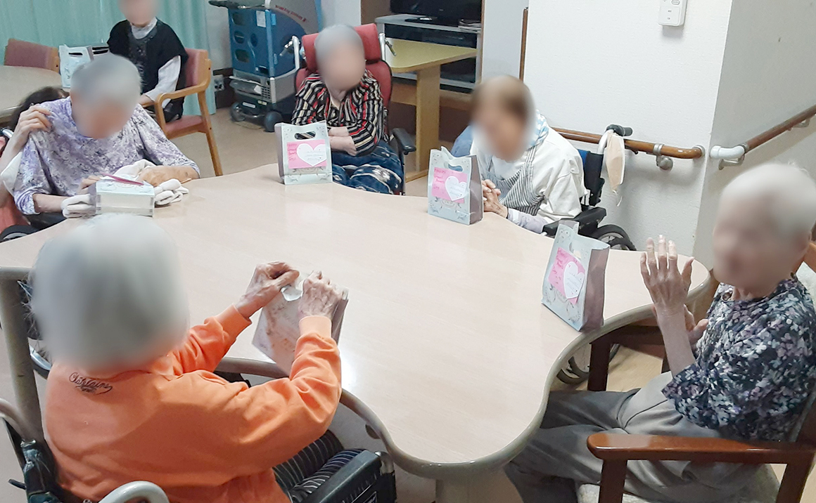 9月15日に敬老会を開催しました。 日頃食べれない刺身などを加え、手作り弁当にしました。おいしいと完食されました。 記念品にタオルを進呈しました。 23日はお彼岸なので、皆様とおはぎつくりをしました。 出来上がりはおいしいと満足されていました。