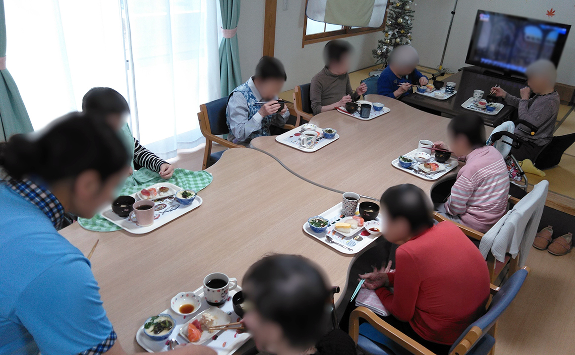 たのしい家平野ではおやつイベントで手作りパフェを各自で作り楽しんでもらいました。 自分で作ったパフェに満足されていました。 食事イベントは1階は手作りの握り寿司、2階は秋の味覚として松茸ご飯と茶碗蒸しなどを食し秋を感じてもらいました。