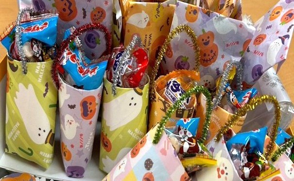 10月の半ば頃、ご近所さんよりHalloweenのお誘いを受け早速準備に取り掛かりました。当日やって来る近所のちっちゃいオバケさんの話題で盛り上がりながら皆さんで作業するとかわいい物が出来上がりました。オバケさん、待ってますよー。