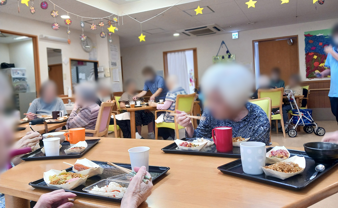 菅原秋祭りを開催いたしました。 入居者様は輪投げや金魚すくいなどの縁日遊びを楽しまれました。 また、焼きそばやフランクフルトやたこ焼きなども大好評で、皆様の笑顔があふれる一日となりました。 これからも、入居者様が季節を感じながら楽しめる時間を大切にしてまいります。