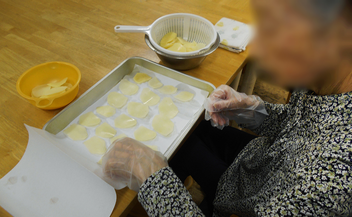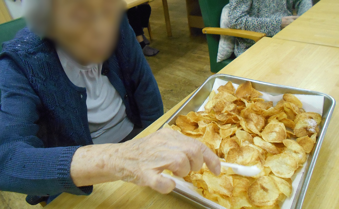 新じゃがのシーズン、ポテトチップス作りに挑戦しました。 じゃがいもをスライサーで薄切りにし、ペーパータオルで水気を吸い取ります。 油で揚げて、揚げたてのポテトに塩をパラパラ。 みんなで手分けして作ると、意外と簡単に出来上がりました。 味は袋菓子のあのポテトチップスそのもの! 止まらないおいしさでした♪