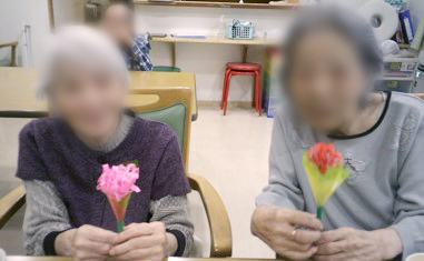 5/14母の日に折り紙で作った赤いカーネーションをお渡しすると「今日母の日?綺麗ね」と受け取って下さいました。