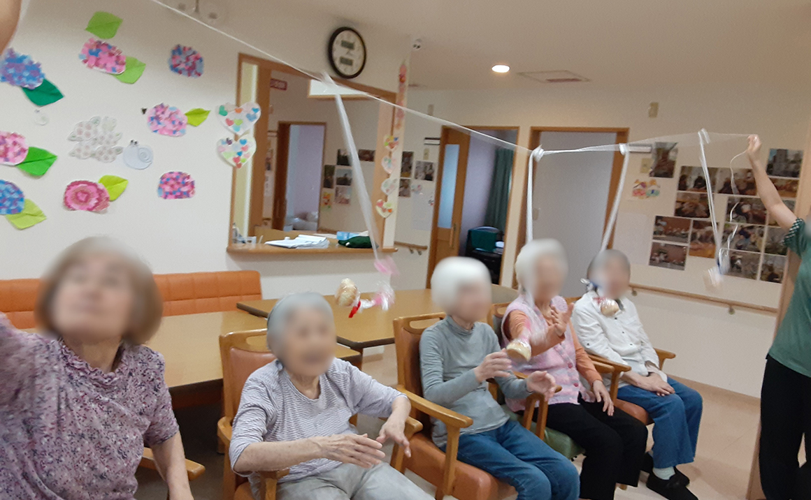グループホームたのしい家中山寺のブログ御覧いただきありがとうございます。 6月は施設内で運動会を実施しました。 新聞リレーやパン取り競争では皆さま競い合われました。 「がんばれー」と声援を出して応援され、最後は皆さまで取ったパン美味しく頂きました。