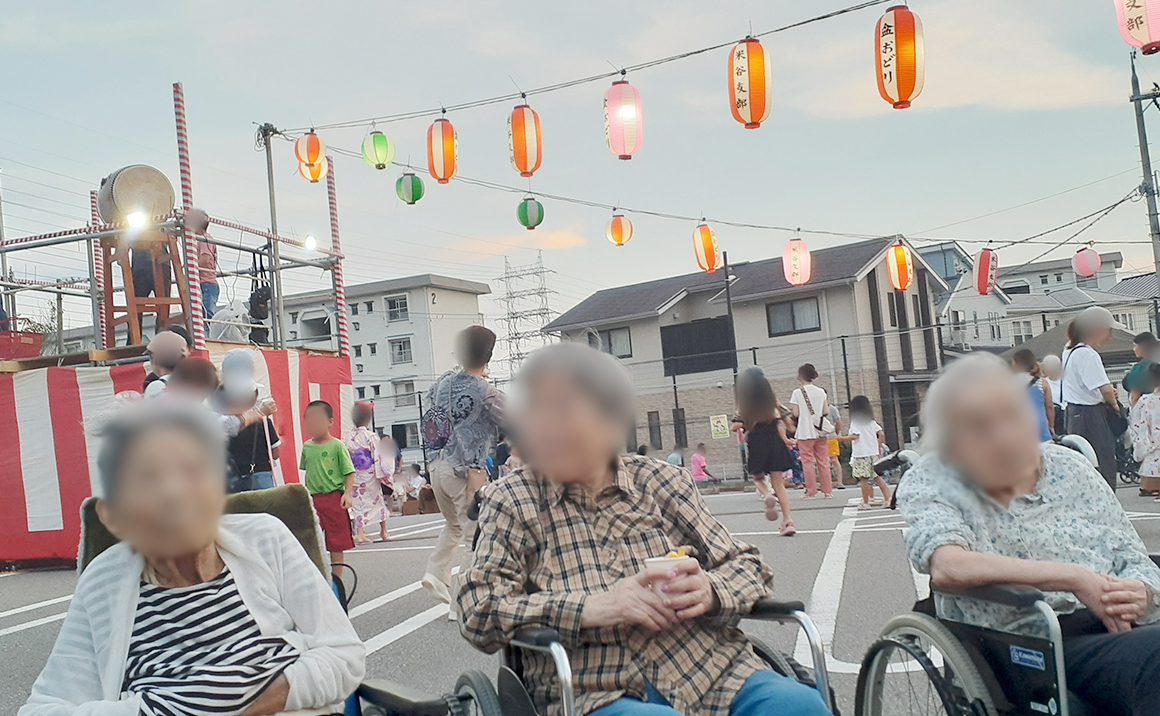 グループホームたのしい家中山寺のブログ御覧いただきありがとうございます。 8月は自治会の夏祭りに参加させて頂きました。 ご家族様も参加されています。 皆さま輪投げで景品をゲットされたり、フライドポテト、フランクフルトなどを食べて楽しまれました。