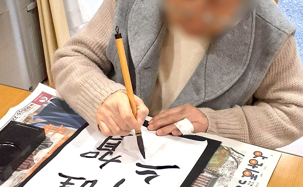 グループホームたのしい家中山寺のブログ御覧いただきありがとうございます。 1月2日に新年への健康、幸福を願い書初めをしました。 「謹賀新年」や「希望」や「寿春」などを書かれています。 久しぶりに筆を持たれた方も多く、懐かしいと笑顔がみられました。 今年もたのしい家中山寺をよろしくお願いいたします。