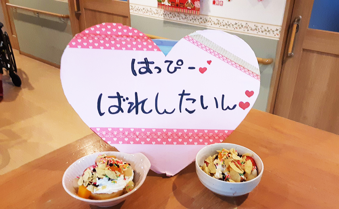 節分が過ぎ暦の上ではもう春ですが 寒さまだまだ厳しいこの頃 皆さま 如何お過ごしでしょうか? ここたのしい家瑞光では節分行事に豆まきで厄払いを行い、バレンタインデイには皆さんの手作りでホットケーキを焼いて頂き 用意したフルーツやチョコレイト ホイップクリームなどで オリジナルなミニケーキを作り 頂きました。 節分では鬼に扮したスタッフに豆を投げ まめならぬ 鬼のケーキを頂き バレンタインデーには それぞれ自作のオリジナルなケーキで 身も心も ホットな一日を過ごされました。