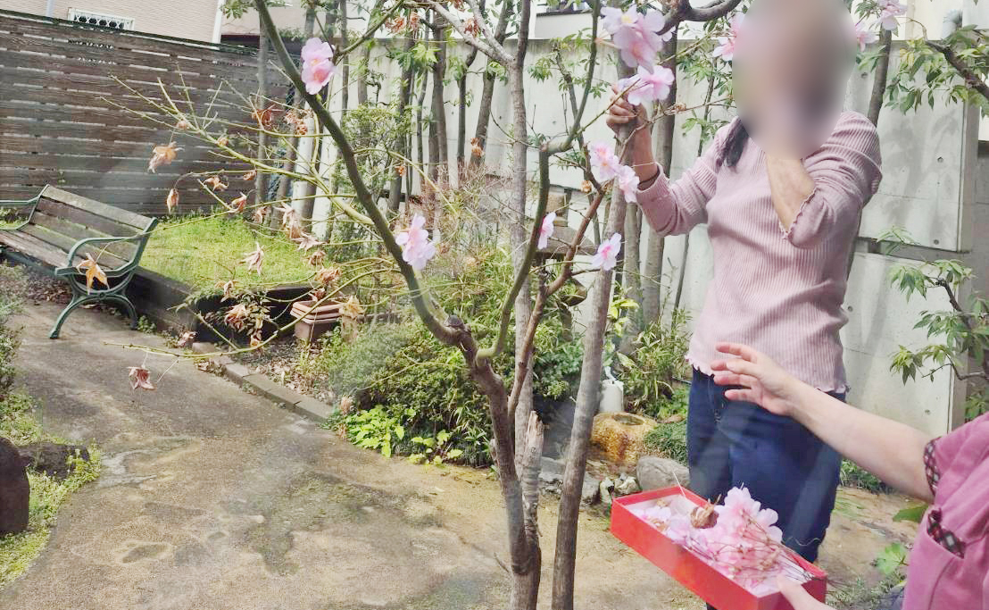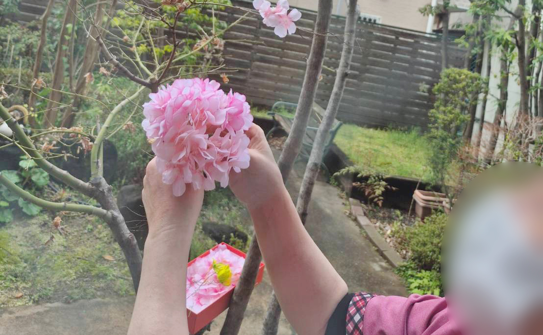 一枚一枚花びらに思いを込めながらゆっくりと咲いていく桜を想像しながら入居者様の表情も自然とほころび「春が来たんやな」「やっと温くなって来た感じ」と懐かしむ声が聞かれました。