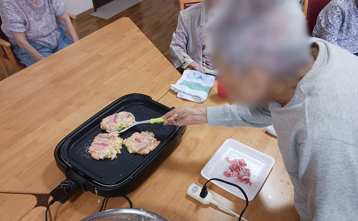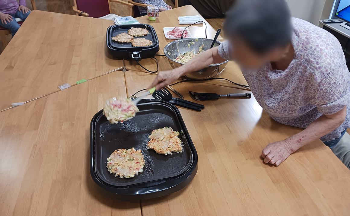 お好み焼きもひっくり返すのが上手な人が多く職員びっくりしてます!