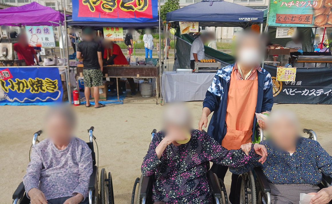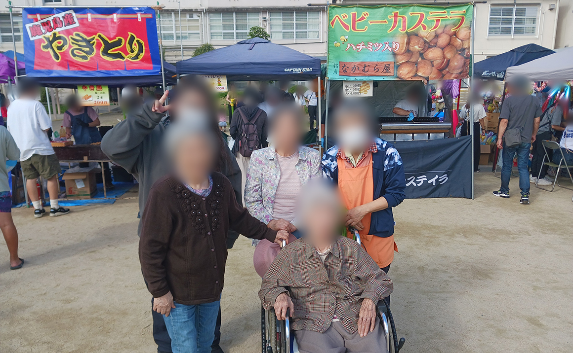 10月は八戸ノ里フェスタに参加しました。地域の方達と交流ができ、様々なミニゲームを楽しまれ入居者様にとって充実した一日になりました。 毎月たのしい家八戸ノ里では、季節に合わせた行事ごとを行っております。いつでもご見学お待ちしております。
