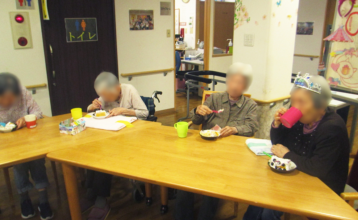11月は入居者様2名が11月に誕生日を迎えました。皆さん手作りのケーキを食べ喜んでくれていました。 来月は認知症カフェに参加します! 毎月たのしい家八戸ノ里では、季節に合わせた行事ごとを行っております。 いつでもご見学お待ちしております。