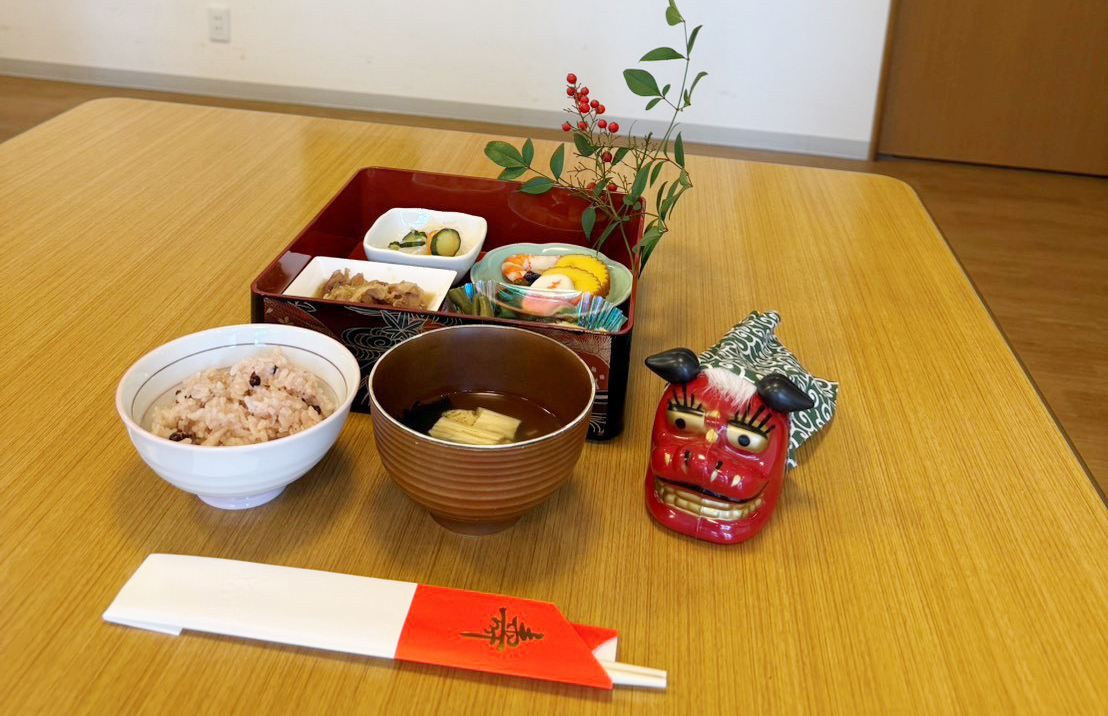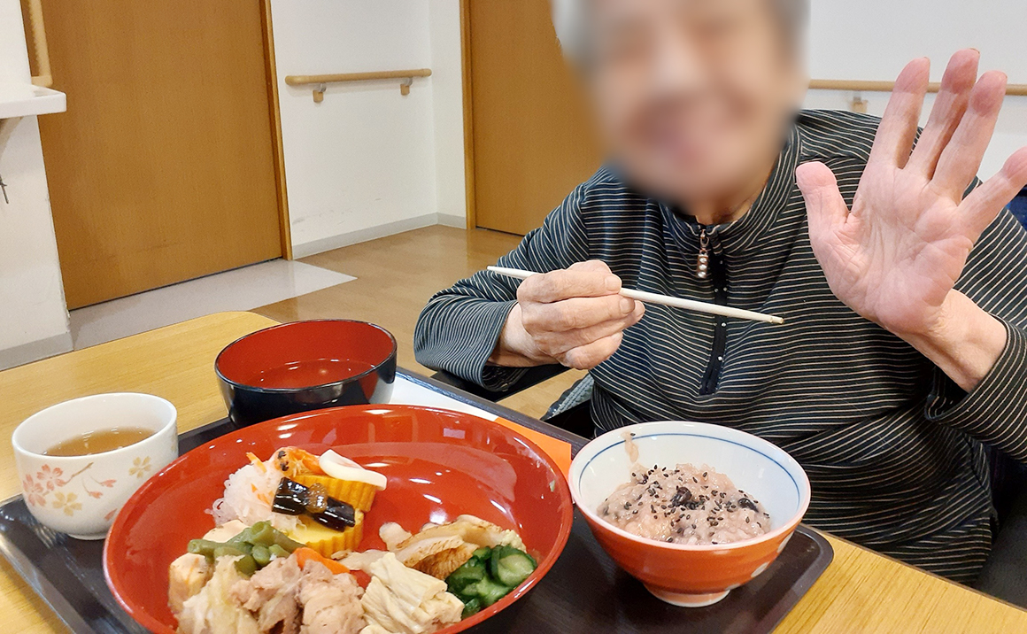 お正月という事でたのしい家梅津ではおせち料理を注文し入居者様に召し上がって頂きました。 皆様「美味しいわ~♪」と言われ大変満足して下さったようです。