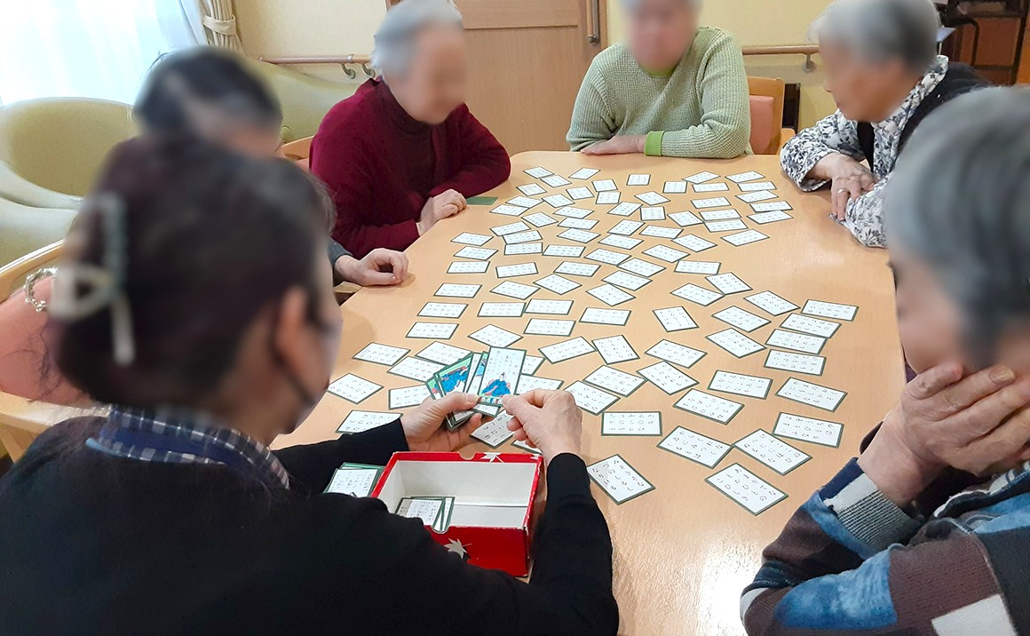 午後からは、かるた遊びや坊主めくりを行いました。札を真剣に探したり、取れた時には自然に笑顔を見せたりと、会話も弾み終始和やかで楽しいひとときを過ごされました。