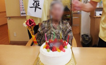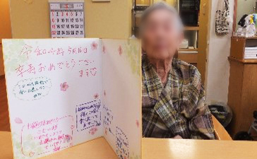 5月19日、2階の入居者様の卒寿のお祝いと、母の日のお祝いををさせていただきました。