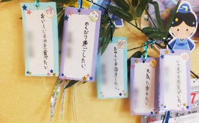 7月1日、2階フロアでたなばた飾りの短冊制作のレクを行いました。