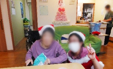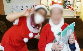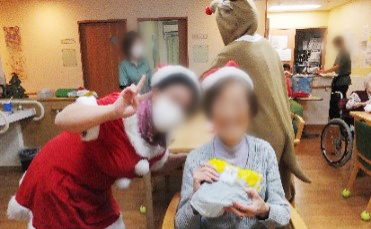 1階の職員が女性サンタ、1階の計画作成がトナカイに扮し
