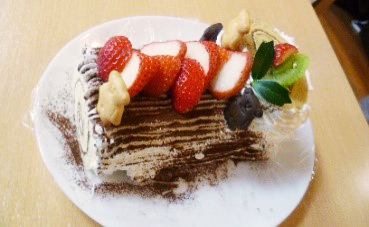 ブッシュドノエルのケーキで お腹を満たし