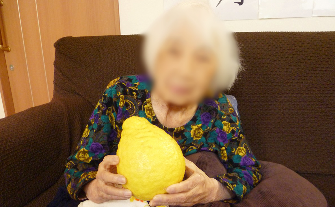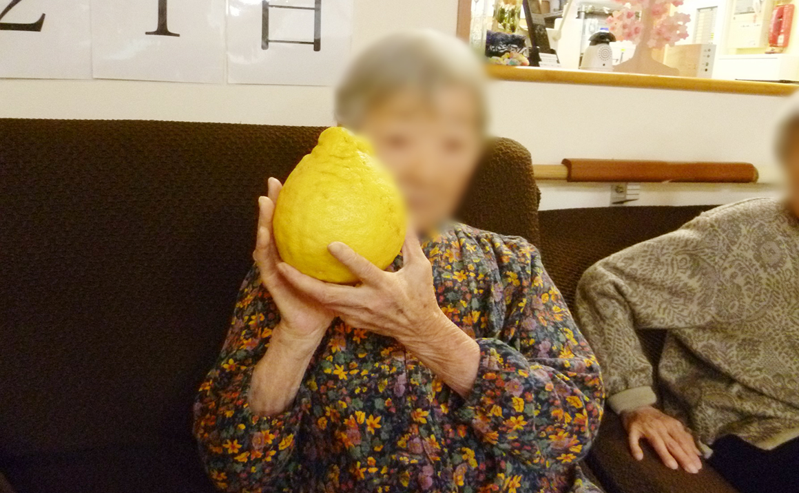 早速ご利用者様にお見せしたところ『お化け檸檬!』と叫んでおられました。